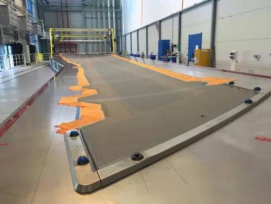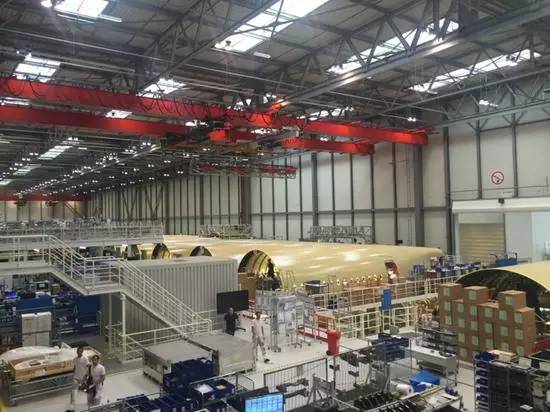 参观过程中,记者也看到了A350机翼上蒙皮的制造过程:先是通过自动铺层机制造机翼上蒙皮,一般需要5个工作日;然后在180摄氏度的热压罐中热压12小时;之后是第二次热压、表面保护措施、质量检验等,总的生产时间在50个工作日左右;最后运送到空客汉堡厂区,再通过大白鲸运输机运往英国布劳顿进行机翼组装。