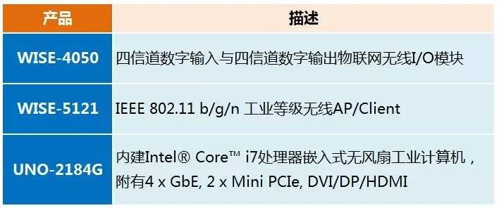 WISE-5121则是一款采用强固设计的工业等级微型基站,其能比一般商用的无线网络设备提供更稳定与可靠的网络通讯,因此非常适合像工厂这类环境较为严苛的场域使用。而且透过加装支持PoE供电技术的WISE-5121,使用者不仅可以轻松地延伸既有的有线网络,还能省去配置电源线的麻烦,藉此加快无线网络之部署。至于UNO-2184G,无风扇、紧凑外观、内建英特尔高性能处理器等特色都让这款嵌入式工业计算机可以最佳性能来满足工厂应用之需求。