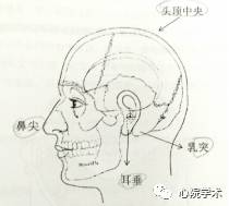 ①生理参考点:鼻尖、耳垂、乳突和头顶中央。