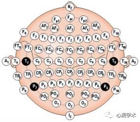 在国际上,制定了统一的电极记录标准,包括10-20系统和10-10系统。现在比较广泛使用的是10-20系统,顾名思义,该系统是由10-20分割的区域组成。如下图: