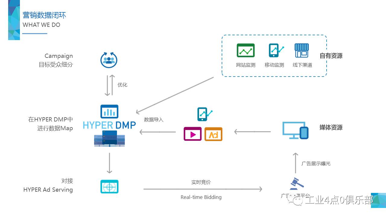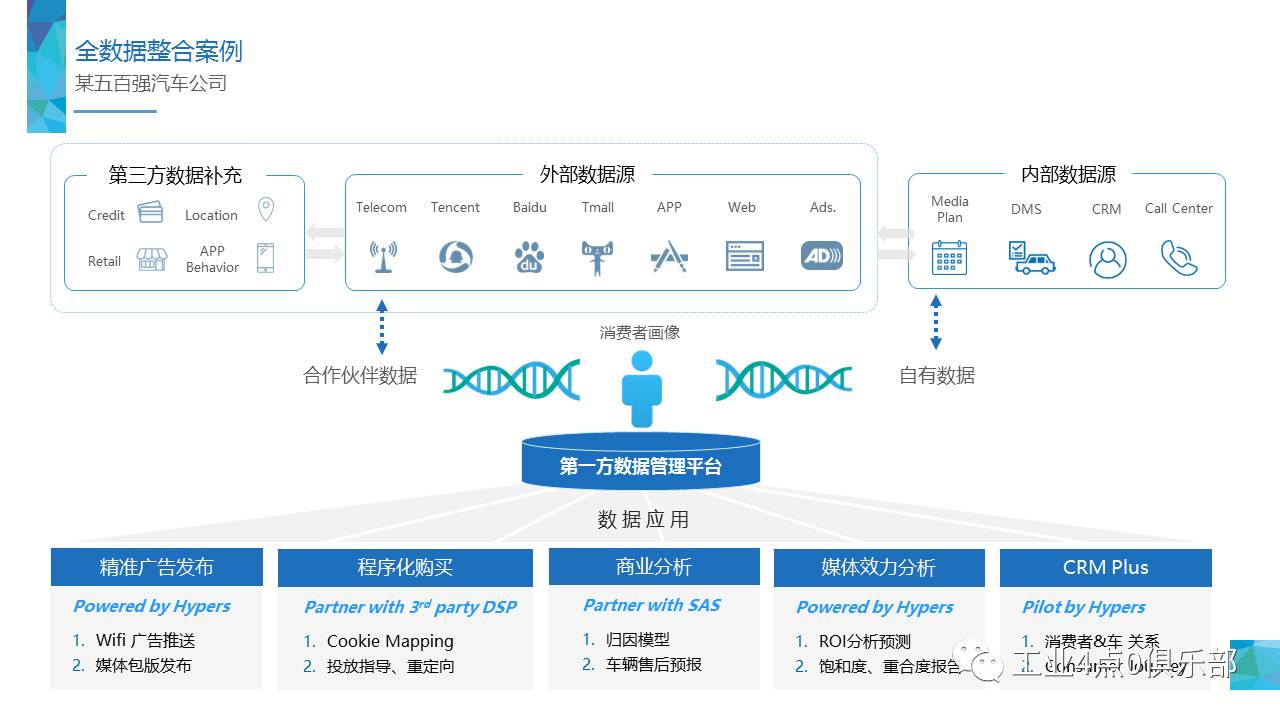 以DMP(数据管理平台)为核心,帮助客户构建属于自己的大数据“枢纽”: