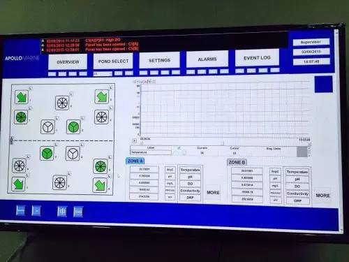 “水质变化前一周,我们就会收到预警。”韦尧荣告诉《农财宝典》记者,该养殖场所有的指标都是数据化的。养殖场的中控室,新加坡总部都能够实时看到养殖场所有的数据化信息,对养殖进行控管、预警,用数据养虾,减少人为影响。
