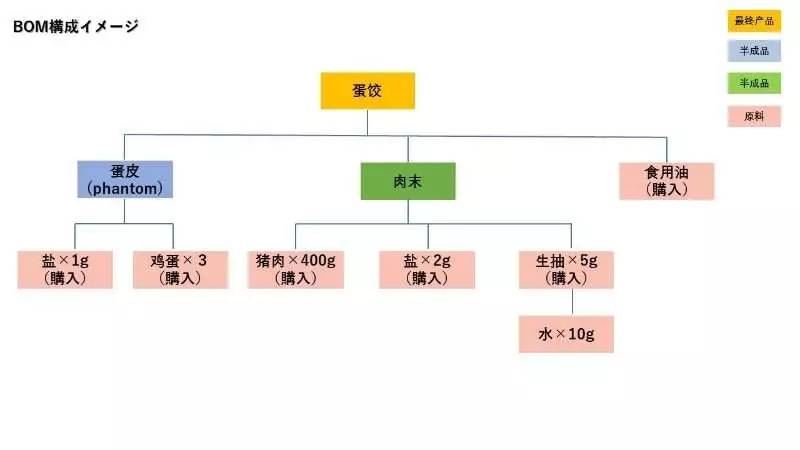 以上简单介绍了BOM的概念。接下来,小生以蛋饺为例来阐述下,为什么我们需要整理BOM以及分享SAP实施Roll out项目经验谈(来看看日本先进制造业是如何管理基础数据的。)