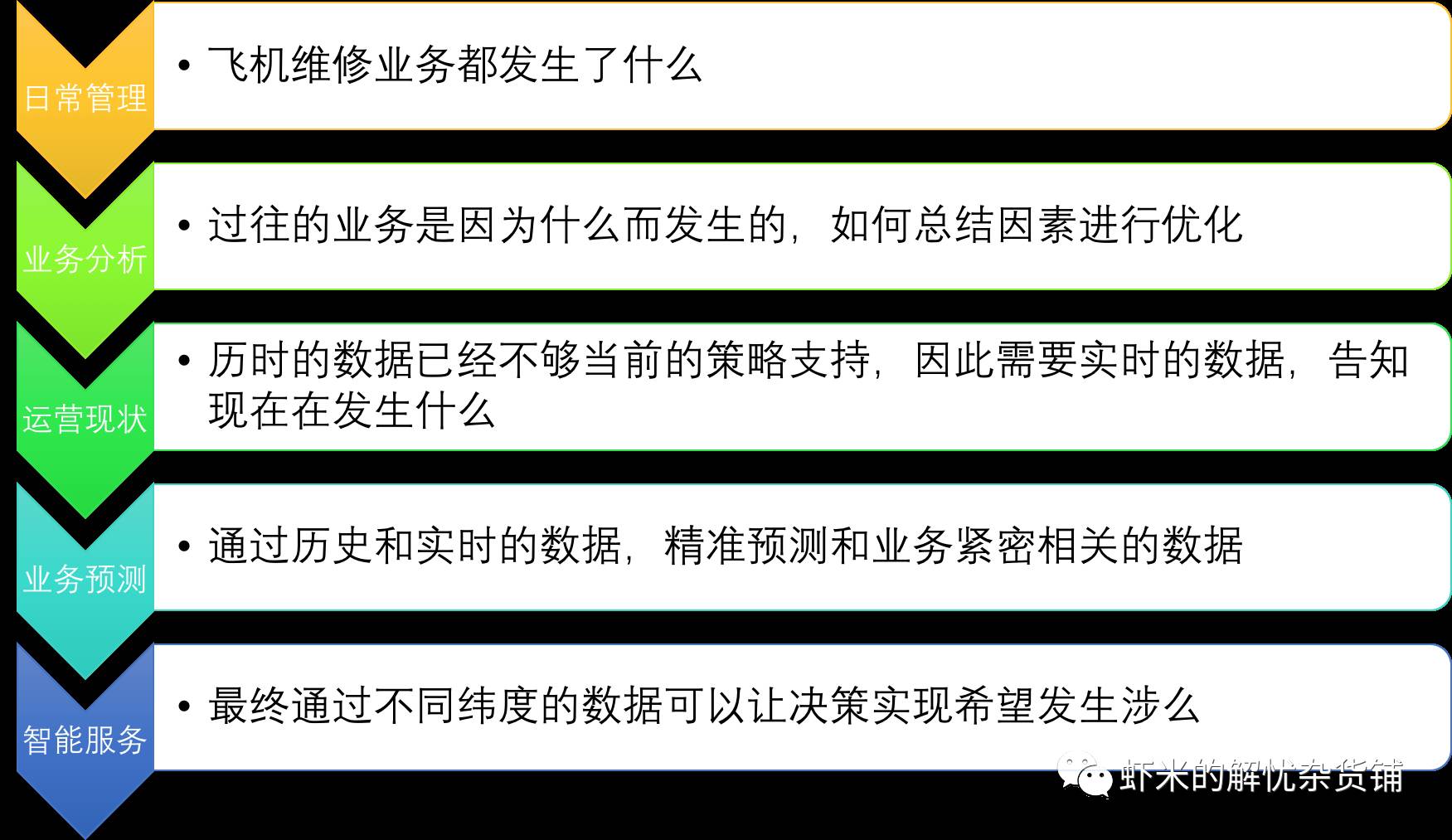 从工业大数据层面考量航空工业飞机维修大数据的应用,应该将数据的应用价值不断的深化和应用,以下: