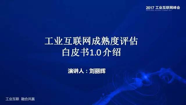 在2017工业互联网峰会上,中国信息通信研究院刘丽辉在会上做了题为《工业互联网成熟度评估白皮书(1.0)》演讲。