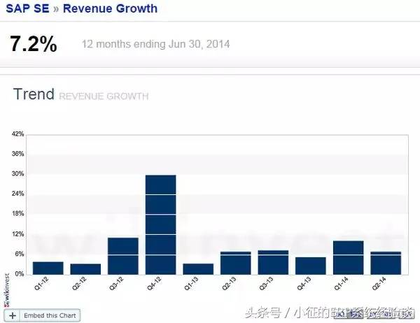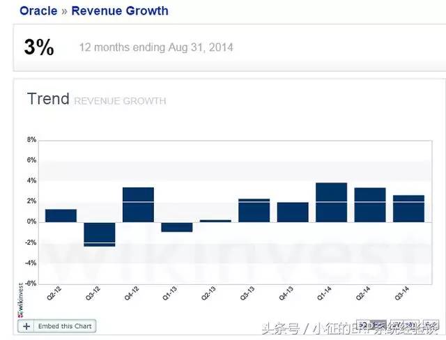 2.看看近年来的Market Growth. S因为迅速把握到客户的流程越来越快的变革需求,在Big Data, Cloud,内存计算,移动应用,新一代商业智能都有成熟的方案了。反观O,9年前收购People Soft算一步好棋,4年前终于整出Oracle Fusion ApplicationERP套件,但是还不如人家S 10年前弄的行业最佳方案。最近5年,Larry好像一直在不喜欢状态,继续富二代一般的生活。