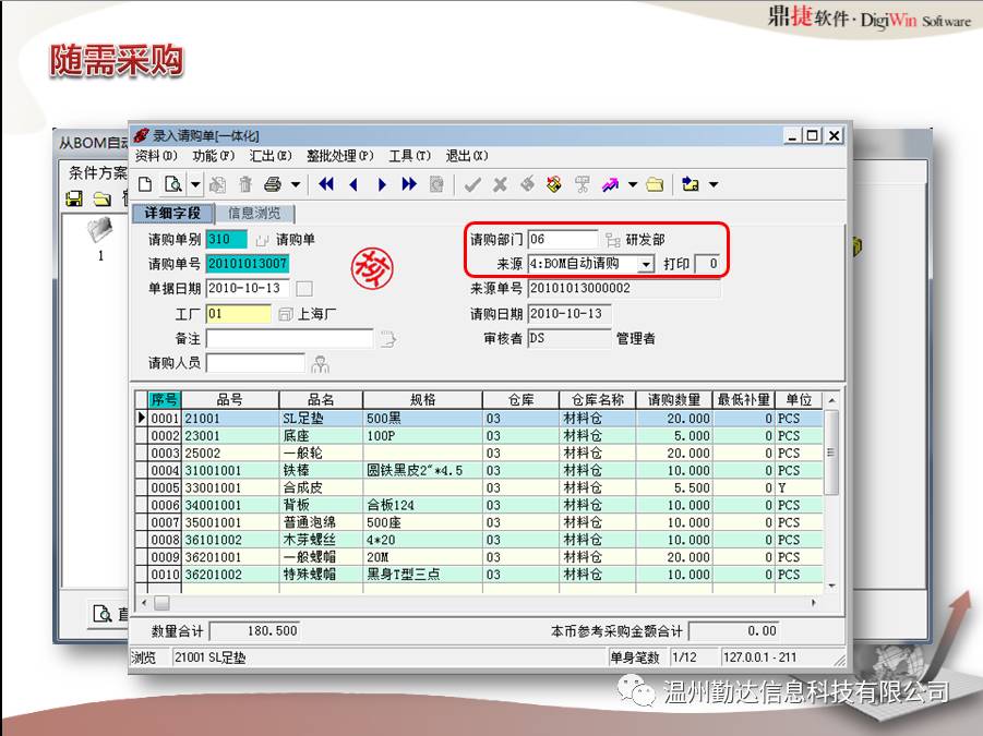 温州勤达信息科技有限公司是鼎捷软件温州地区总代理,致力于制造业的ERPII信息化智能化服务。咨询电话: 0577-86186868 。