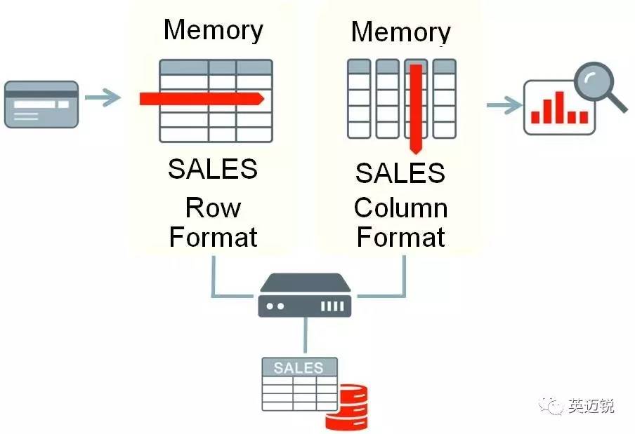 Oracle Database In-Memory的一大创新即是突破行列限制,采用双格式数据库内存。Oracle Database In-Memory通过在同一张表在内存中同时支持行和列两种格式,同时激活并保持事务一致性,对分析和报表采用列格式,OLTP则采用久经考验的行格式运行。