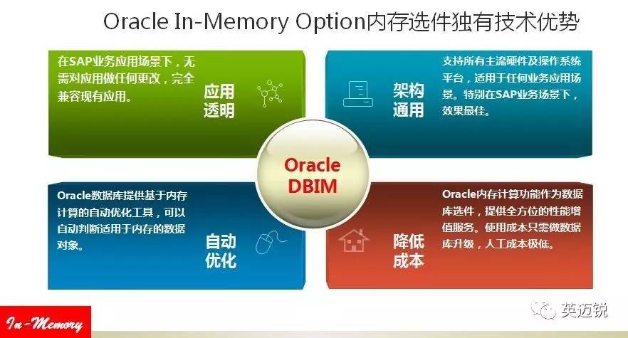 Oracle Database In-Memory可以说是一次颠覆性的创新。作为Oracle数据库的可选配件,Oracle Database In-Memory可以直接在Oracle数据库上进行升级,无需对应用进行任何修改。利用现有的硬件技术就可以获得内存计算的技术,提升分析性能。