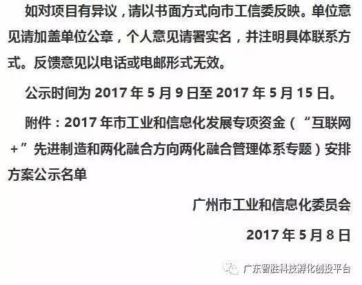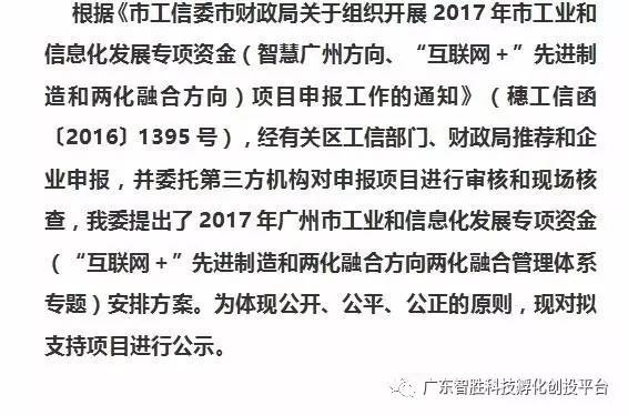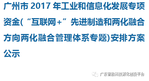 【项目公示】广州市2017年工业和信息化发展专项资金(“互联网+”先进制造和两化融合方向两化融合管理体系专题)安排方案公示