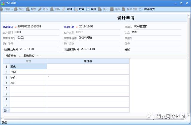 根据ERP订单创建设计申请:通过设计申请载体有效地把客户设计需求从营销传递到设计,确保了客户需求在营销、设计、制造环节的同步,保障了生产的准确性;