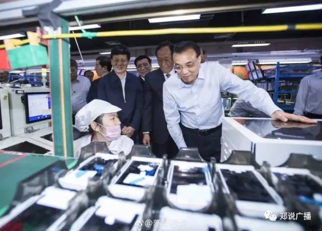 李克强9日考察郑州富士康科技园,郭台铭董事长亲自介绍。在厂房前两人驻足交谈5分钟,临上车前再次驻足交流。总理说,希望富士康把更多高端研发和全产业链放在这里。我们会进一步扩大开放、优化营商环境。中国有巨大的市场和人才资源,是发展制造业的最佳投资目的地。