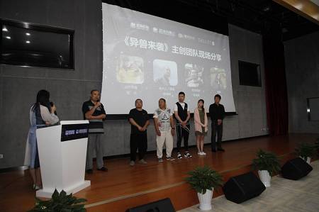 互联网与电影工业高峰论坛暨《异兽来袭》观影会成功举行原广电部副部长何栋材,蓝海彤翔集团董事长、蓝海创意云创始人鲁永泉博士,德丰影业董事长李纪丰出席并发表致辞。北京电影学院美术学院电影特技研究室主任刘晓清教授、北京电影学院管理系巩继程教授、乾道影业董事长姜乐、德丰影业副总经理符建,新加坡VHQ传媒集团副总裁Kenn Tan(陈国强)、媒体控股集团制作总监Kate Choi,每日视界影视特效部总经理王上、《异兽来袭》导演陈海帆等百余名业内专家和企业家参加了会议。