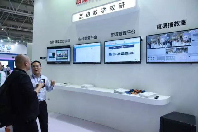 展会现场,一堂真实、生动的在线课堂正在进行。只见几个活泼可爱的孩子,通过华平在线课堂系统,正与千里之外安徽亳州某校的老师和学生同上一节音乐课。“啦啦啦!啦啦啦!我是卖报的小行家……”,欢快的歌声从屏幕的那头传出,与现场小伙伴们的歌声融为一体,飘荡在整个展区。