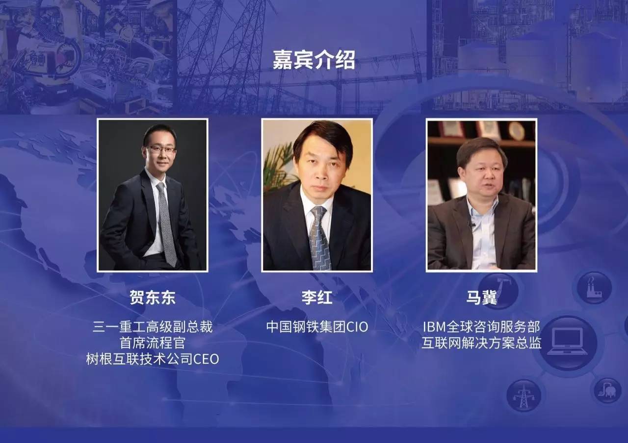 会议邀请嘉宾有三一重工高级副总裁贺东东、中国钢铁集团CIO李红及IBM全球资讯服务部互联网解决方案总监马冀,分享三一重工利用工业互联网实现产品创新的案例及中国制造业转型升级成功经验,为中国制造业实现转型与创新提供参考和借鉴。