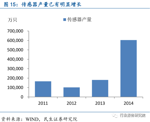 根据《装备制造》数据,2015年全球市场约1770亿美元,预计在未来五年内,全球所有的传感器领域的复合年增长率都将超过15%,2015年我国传感器销售额突破1300亿元,但95%以上均为进口配套形成。