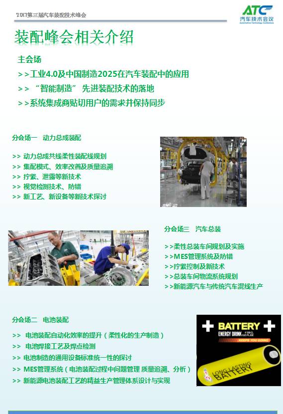 本次峰会将继续探讨汽车装配车间的最新工厂规划思路、新技术应用、新工艺、新设备,创新工业软件等汽车装配技术,增加国际知名的厂商和技术解决方案公司分享技术及案例。以推动中国汽车装配技术的飞速发展。