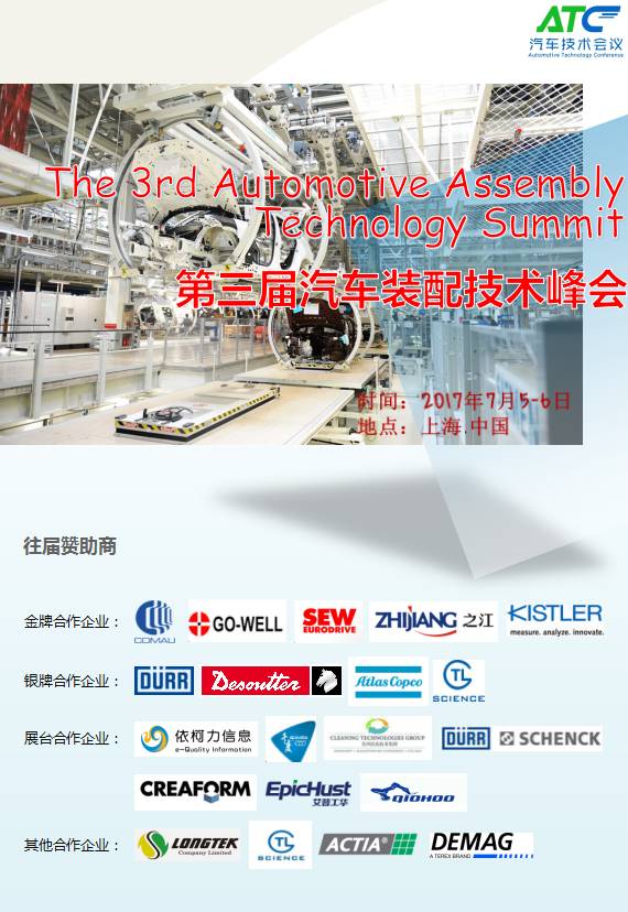 “第三届汽车装配技术峰会”将在2017年7月5-6日再次隆重举行,在延续“汽车总装”和“动力总成装配”两个会场的基础上,在众多与会者的建议下,本届会议将增设“电池装配“分会场,本届会议预计将超过600名汽车装配技术领域的专业人士,已成为国内最大规模、技术水平最高的汽车装配技术盛会。