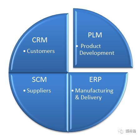 那么,在企業信息化建設中所用到的技術CRM、PLM、SCM、MES與ERP這些概念之間又有什么聯系與區別呢?