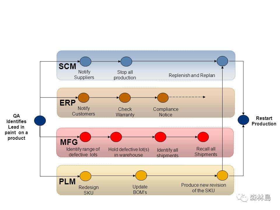 ERP主要采用填寫表單和表單拋轉的方式實現管理,現場收到的制造任務是通過表單傳達,現場制造數據也是通過填寫表單完成收集。MES是采用事件的方式實現管理,生產訂單的變化和現場的制造情況,通過MES內置的WIP引擎立刻觸發相關事件,要求相關人員或設備采取相應的行動。