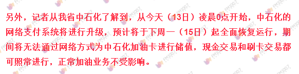 今日(5月13日),《每日经济新闻》记者获悉,全国多地,包括北京、上海、重庆、四川成都、四川南充等多个城市的部分中国石油旗下加油站在今日0点左右突然出现断网,而因断网目前无法使用支付宝、微信、银联卡等联网支付方式,只能使用现金和加油卡支付,加油站加油业务正常运行。