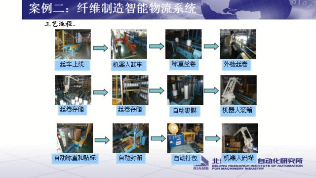 另一个纤维制造智能物流系统。我们通过自动化设备完全替代了人工作业,实现了从产品的上线到发送,全流程的自动化。