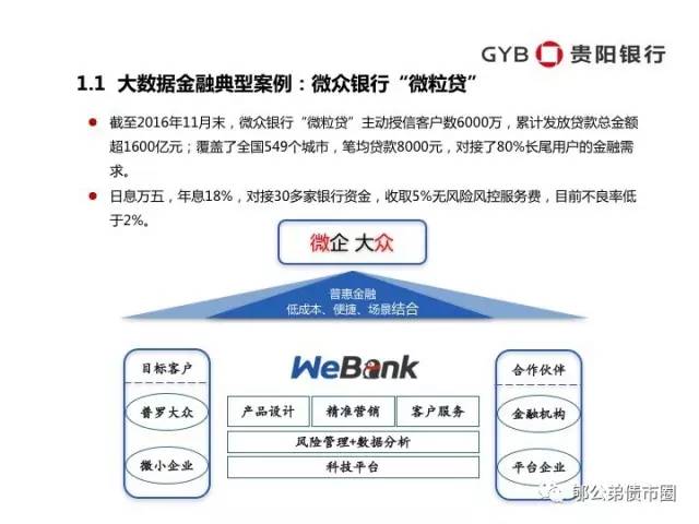 大数据的空中打击优势,与中小银行的地面部队优势,可以更完美的结合,创造全新的大数据金融新模式。