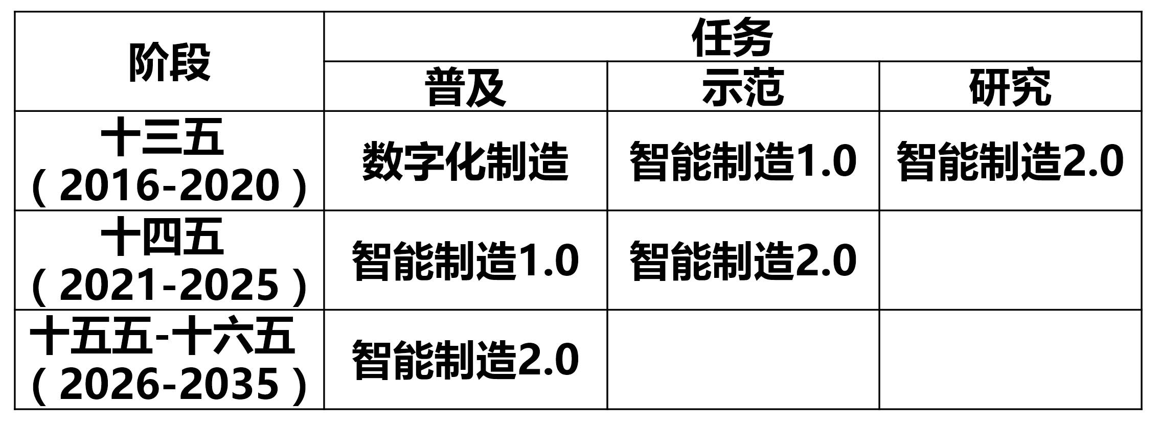 在中国推进智能制造,要从不同的角度,不同的层次去考虑,包含了制造业的数字化、网络化、智能化,可以说是由三个不同范式的制造系统逐层递进而成。九十年代体现在以数字化制造为主,对应的是工业3.0的水平,现在大家正在推进或者大家认识的智能制造实际上是智能制造1.0,因为里面基本上没有用到最新的人工智能技术,制造业的智能化基本还没有开题,这种制造相当于工业3.5,今后真正的目标还是要实现智能制造2.0,这才是真正意义上的工业4.0。