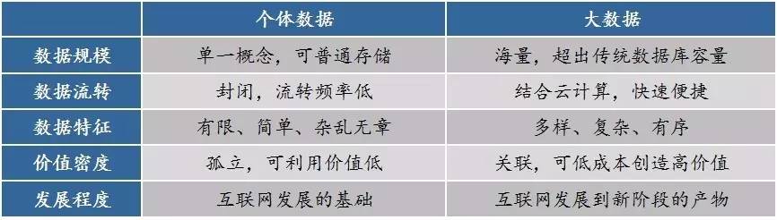 ▲表1 个体数据与大数据