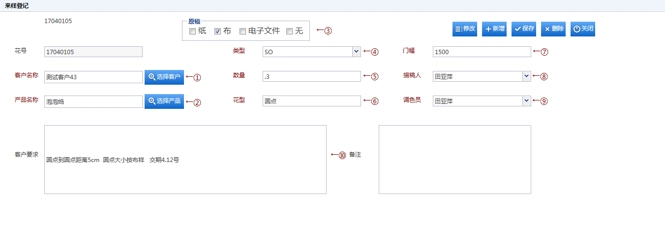 来样登记: