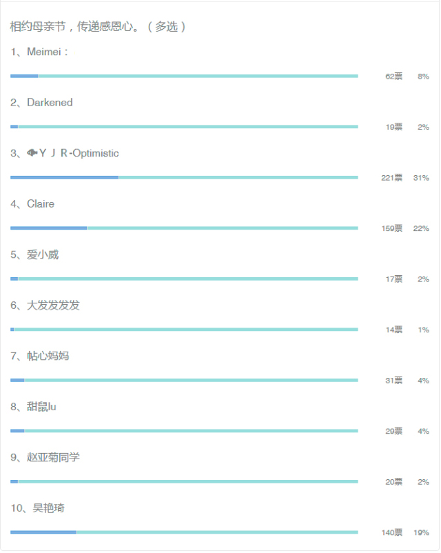 投票结果想必大家都看到了,获得等级奖的朋友们果然是优势突出啊!鲜花在母亲节当天都送给各位母亲啦~快看看妈妈们多开心啊~