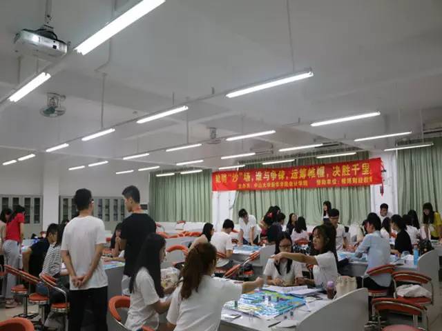 为了让本院学生走进沙盘,了解沙盘,普及ERP基本知识,让他们走出课堂,在一个生动的环境中学会如何经营运作企业,从中体会运营的本质与规则,提高学生的创新创业能力,促进我校就业创业教育的蓬勃开展。由中山大学新华学院会计学院主办,会计学院学生会承办的一场智慧的角逐——ERP手工沙盘大赛初赛第一场在2017年5月16日下午于格物楼①C503正式拉开帷幕。