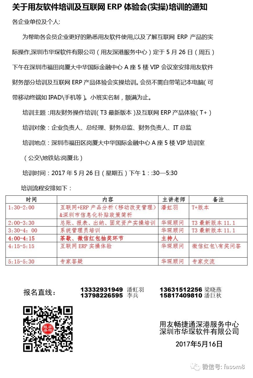 关于526用友软件培训及互联网ERP体验会(实操)的通知