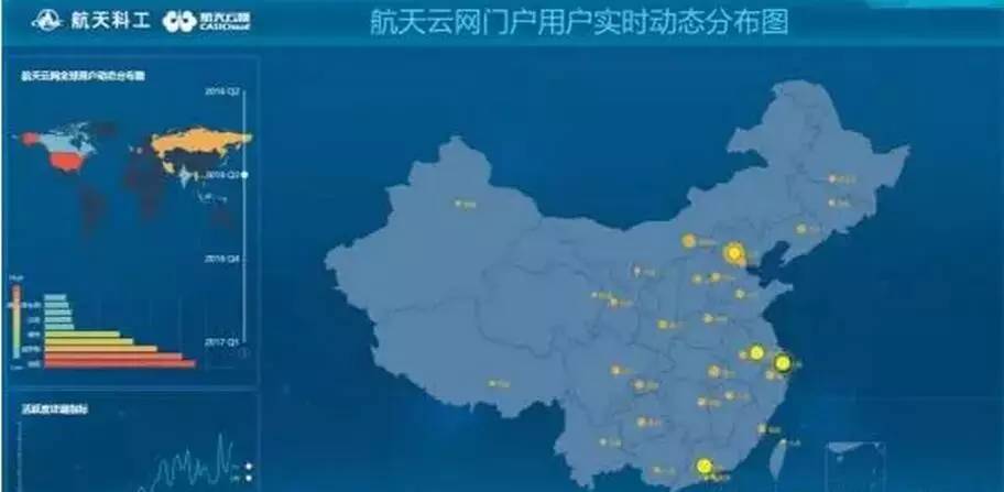 一是门户网站的运维服务,展现了航天云网在全国和世界范围内的实时用户分布情况;
