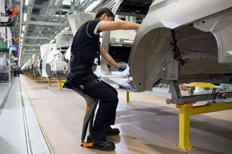 在参观新大东工厂的过程中,给我留下较深印象的,还有在总装车间看到的“机械战警”。工人的腿上连接着一种叫做“机械外骨骼”的无座座椅,工人在从事重体力操作时,可以随时获得坐下来一样的支撑,让我们看到工厂人性化的一面。而在工人面部,则佩戴着”智能光学眼镜”,工人可以直接获取操作流程的描述和数据,看起来十分具有未来感。