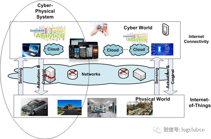 以上的图7和以下的图8揭示了CPS以上的本质。IoT 构建了物理世界中的连通的网络,CPS在物联网上面构建了综合技术体系所构成的系统。