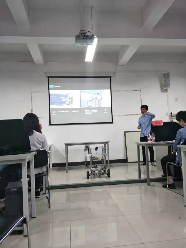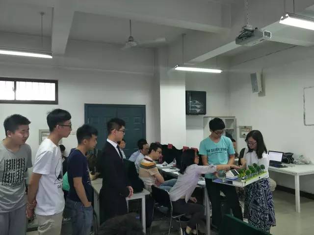 紧接着,各参赛队伍按照抽签顺序依次上台答辩。此次比赛包括答辩和评委老师提问两个环节。答辩环节由小组成员结合PPT展示作品,从研究问题、解决方法、推广应用领域、人员分工、创新点等方面讲解自己的作品。陈述结束后进入评委提问环节。各评委老师针对不同的作品提出问题并给出修改意见。期间,有多个优秀作品引起评委老师们的浓厚兴趣,特别是名为《一种人工湖智能报警救生系统》的作品,在实物模型展示时引得在场老师和同学注目观看,连连称赞。