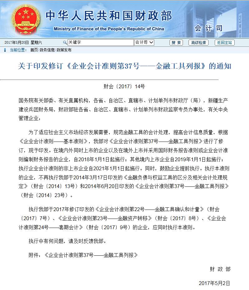 企业会计准则第37号——金融工具列报