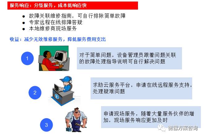 将衡器设备智能化,并连接到云服务平台,实现衡器设备的远程可监控、可管理、可服务,向衡器用户提供实时状态查询和后台专家服务。这样客户可以随时用手机登录查询所有衡器工作状态,如果发现故障报警可以马上通知衡器厂家。衡器厂家也可以通过仪表发送回来的故障信息提前预判现场可能存在的问题,将需要替换的零部件直接带好赶往现场对症下药,效率将远远超过传统的服务模式。