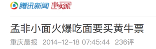 在「孟非的小面」南京河西万达店,那一眼看不到头的队伍,绝望的等候时间,略显奢侈的价格,黄牛票满天飞的无奈,都没有浇灭小面一众拥趸的热情。