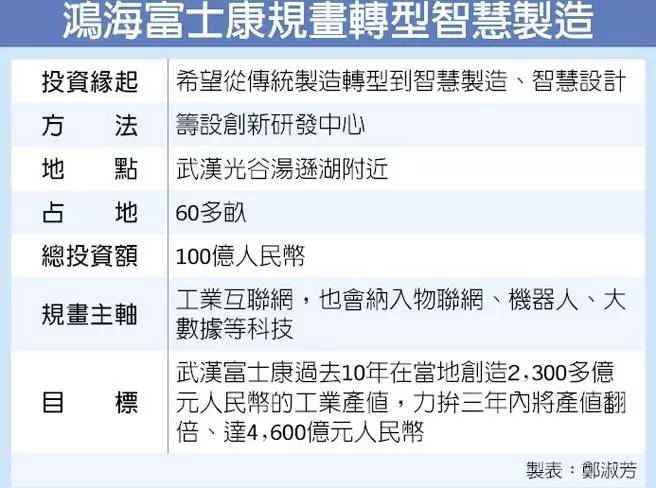 从代工制造转型到智能制造,鸿海富士康拼了!决定再砸百亿人民币,在武汉筹设以工业互联网为主轴进行规划的创新研发中心,除了做好智能制造,还将进一步做到智能研发,目标锁定3年内将产值翻倍,达4,600亿元人民币。