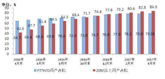 图4 2016-2017年4月光纤接入(FTTH/O)和20Mbps及以上