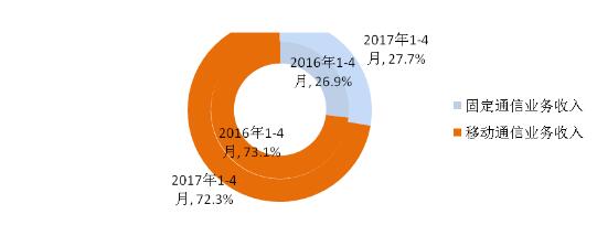 图2 2017年1-4月电信业务收入结构占比情况(固定和移动)