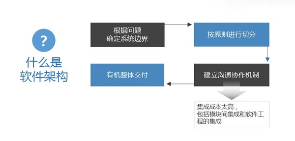 AI如何植入企业的基础平台?焦烈焱在演讲中庖丁解牛般对企业软件架构进行了剖析。实际上,云计算时代的软件架构是一个分而治之的体系,根据问题确定系统边界,按照一定原则进行切分,建立不同模块间的沟通机制,最后整体性交付软件功能。软件架构有合与分两种形态,整合是为了整体交付,切分是为了研发、运维方便,合与分存在矛盾,而这种矛盾是通过集成解决的,集成工作的复杂度影响了复杂系统的研发,但软件架构中复杂的集成工作却可以利用人工智能方式简化下来。