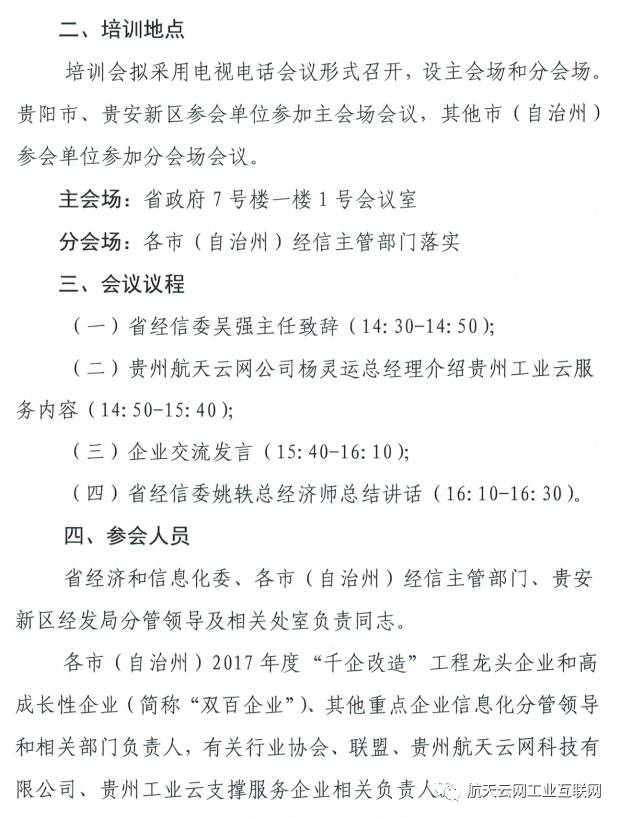 按照贵州省省长孙志刚“全力推动高端企业、先进技术与贵州省产业企业有机嫁接,加快传统产业和服务业信息化改造”的重要指示,为加快国家大数据(贵州)综合试验区建设,加快推进大数据、“互联网+”、信息技术与工业的深度融合,加快贵州工业云平台的推广应用,助力实体经济加快发展,促进转型升级和提质增效。5月23日,贵州当地政府召开2017年贵州工业云推广应用培训会。