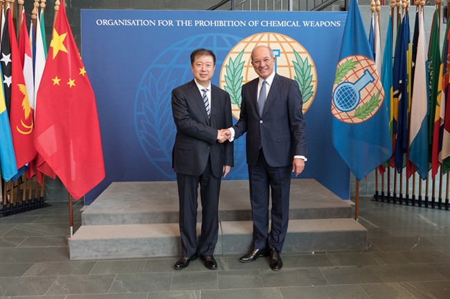 2017年5月18日,工业和信息化部副部长刘利华在荷兰海牙与禁止化学武器组织总干事阿赫迈特·尤祖姆居举行会谈,就履行《禁止化学武器公约》相关问题交换了意见。