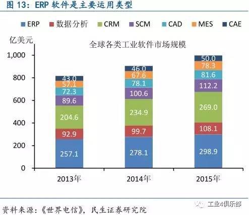 截止2015年全球MES软件的规模达到78亿美元,维持17%左右的高增长率。客户管理和供应链管理软件的高速增长也反映出制造企业顺应“网络化协同制造”的要求,更加重视与消费者和产业链的信息交流。