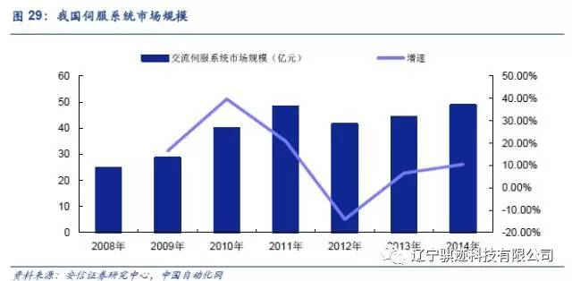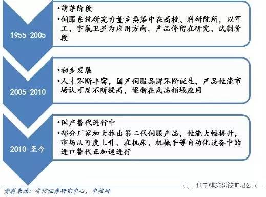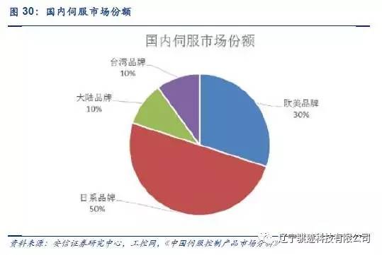 中国内较大的伺服品牌市场包括上市公司埃斯顿、汇川技术、华中数控、广州数控、和利时、新时达,新三板公司北超伺服。其中,汇川技术提供的机器人解决方案中伺服电机和数控系统基本实现自给,新时达、埃斯顿部分型号机器人开始使用自行研制的控制器和伺服系统,北超伺服能够为客户提供电机与驱动器一体化产品。