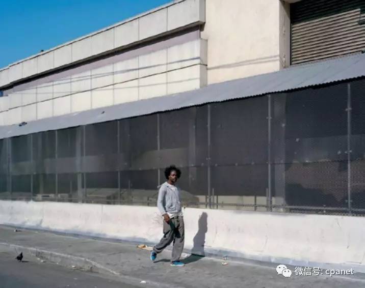 Lise SarfatiOh,man 2015另一位法国著名摄影家利斯·萨法蒂(Lise Sarfati)题为《啊,男人》系列新作也出现在展销会上。这位曾主要以反映女性心理状态作品著称的艺术家这次将镜头对准男人。她在洛杉矶破败街区寻找到合适的街景,之后等待单独的男人走入画面,再用大画幅相机拍摄。她的作品画幅同样巨大,令人想起杰夫·沃尔(Jeff Wall)在街头摆拍的作品。萨法蒂的新作细节丰富逼真,巨大的画面中阳光明媚但只有一人独行,暗喻现代大都市中人的孤独处境。但该系列作品似乎并没有超越这位艺术家的早期成名作品。