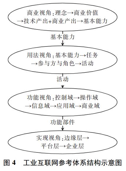 IIRA采用了复杂系统建模通常采用的方法,分别从商业视角、用法视角、功能视角,实现视角构建工业互联网的需求模型、用例模型、功能模型和实现模型,如图4所示。